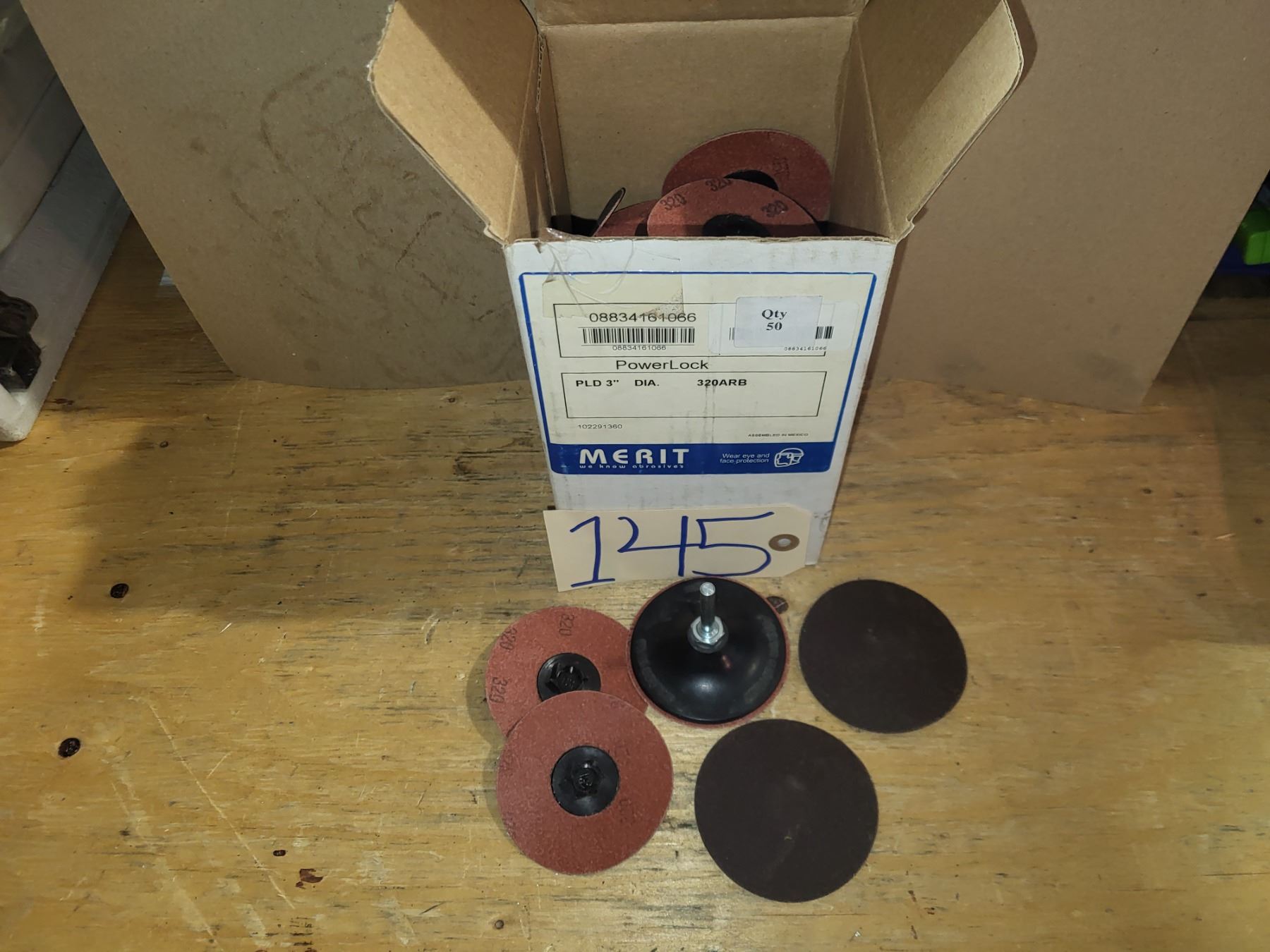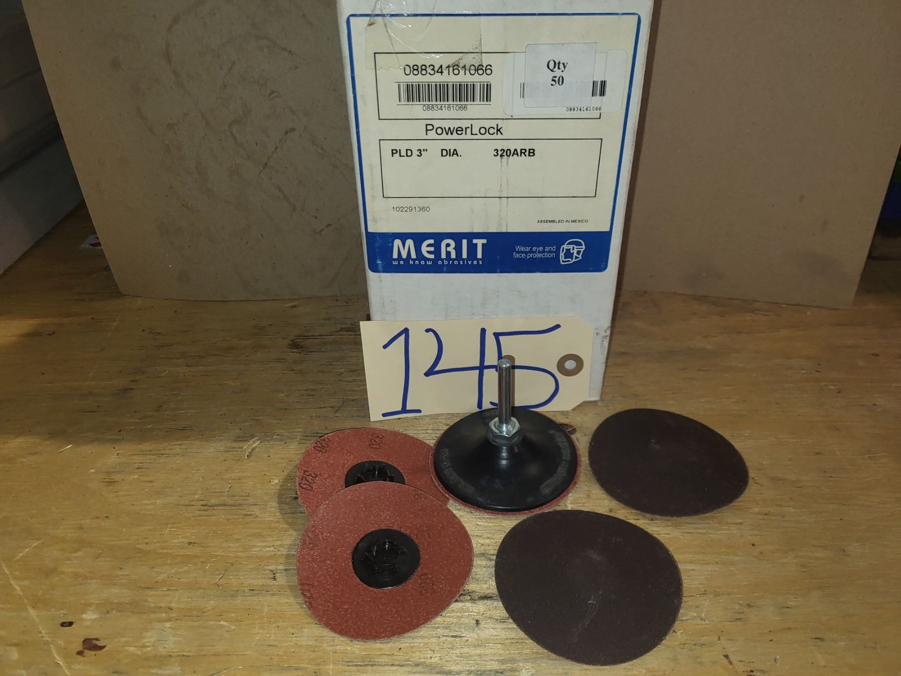 Box(50) of MERIT Quick Change Disc 3" Gr.320 with Mandrel