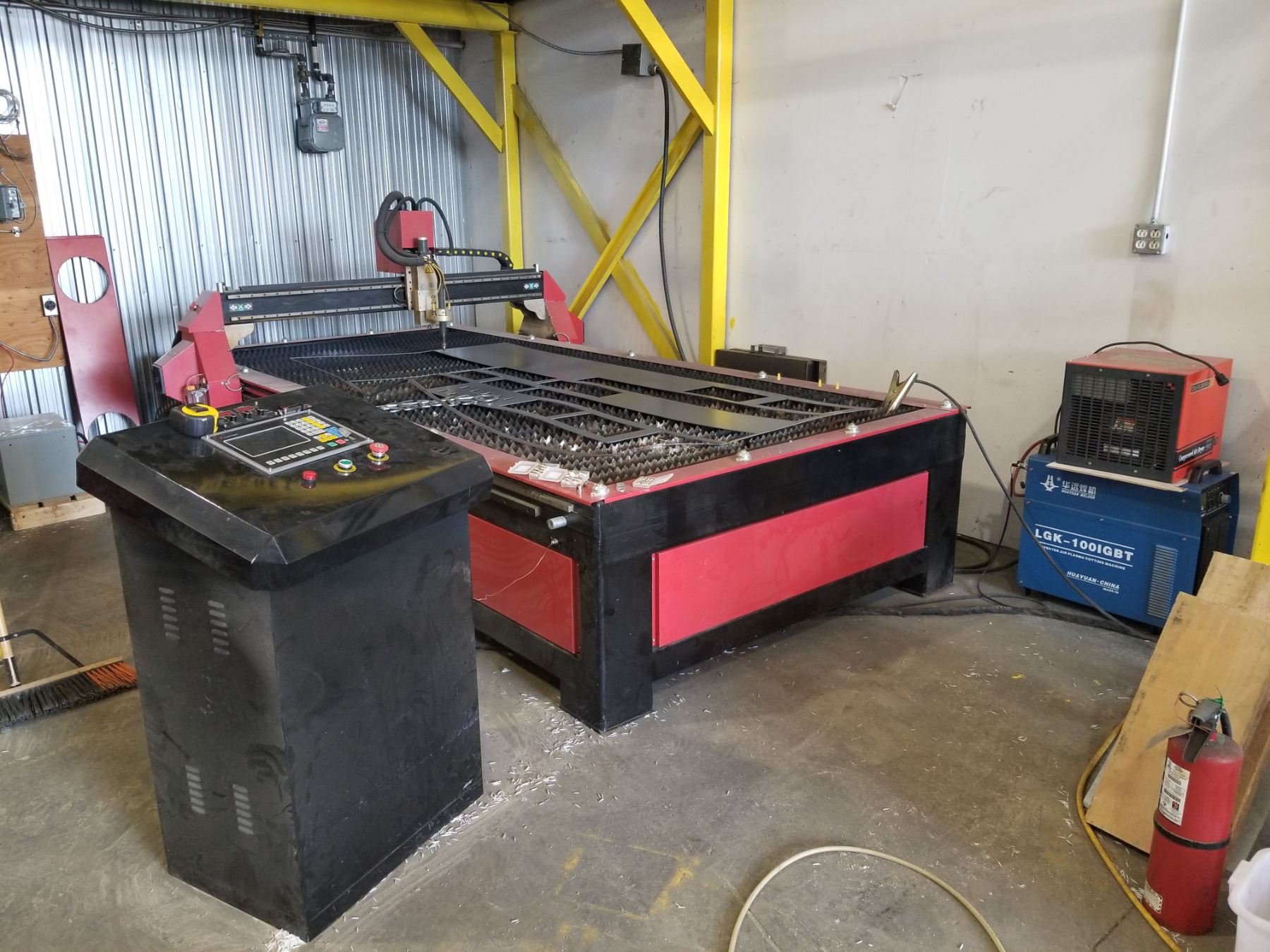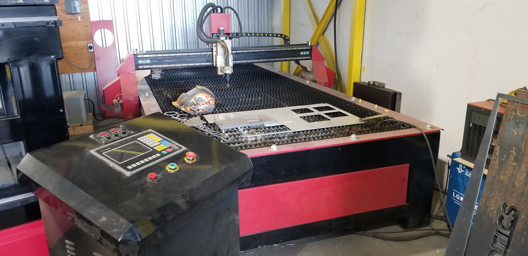 IRIDUIM CNC MACHINE (Made in Canada) / MADE WITH 8 MM WELDED STEEL FRAME WITH HIGH TEMPERATURE TEMPERING TREATMENT / 220 VOLTS SINGLE PHASE 60 HZ / 5 HP AIR COOLED 18 000 RPM SPINDLE / ALUMINIUM T SLUT TABLE / 62 X 121 INCHS WOOK SPACE / HIGH PRECISION HELICAL RACK GEAR / 1 INCH BALL SCREW Z AXIS DRIVE / HIWIN LINEAR GUIDE RAIL / MONSTER HEAVEY DUTY NEMA 34 1200 OZ/IN STEPPER MOTOR / GERMAN ADVANCED PC BASED CNC CONTROLLER / SIMPLE 1 PAGE OPERATION / SHORTEST POSSIBLE CNC PRODUCTION WITH ADVANCED LOOK HEAD FEED ALGORITHM / NESTING MODE / FEED OVER RIDE / EASY START HALF WAY IN GCODE / SUPER LONG FILE MODE 100 000 000 LINE GCODE / PAUSE, JOG, RESUME RUN IN MIDDLE OF GCODE / CAN BE USE WITH ANY CAM SOFTWARE / PC WITH WINDOWS 10 / 20 INCHS MONITOR / WIRELESS MOUSE AND KEYPAD