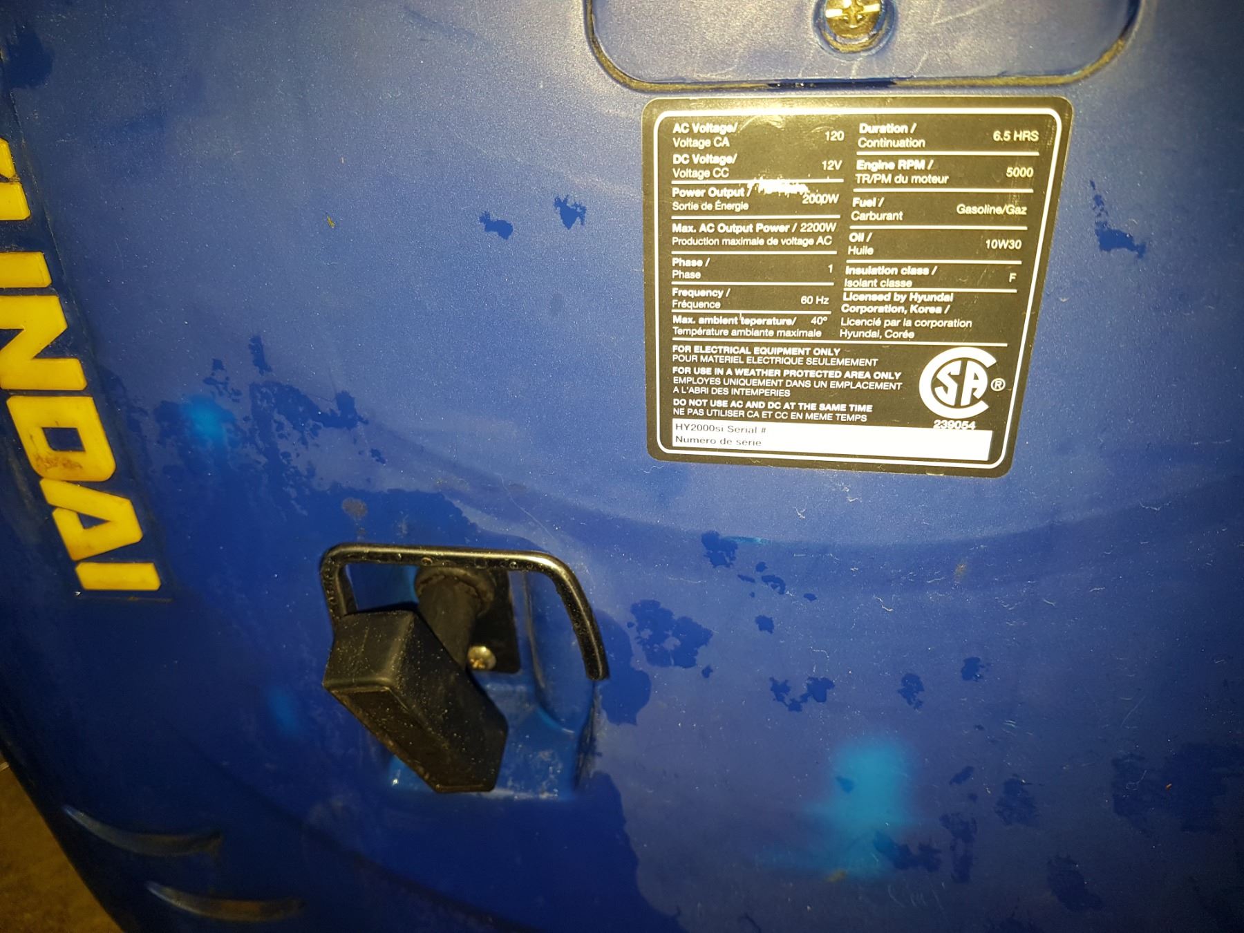 Hyundai HY2000Si Portable Generatrice 2000w 110v avec sortie 12v
