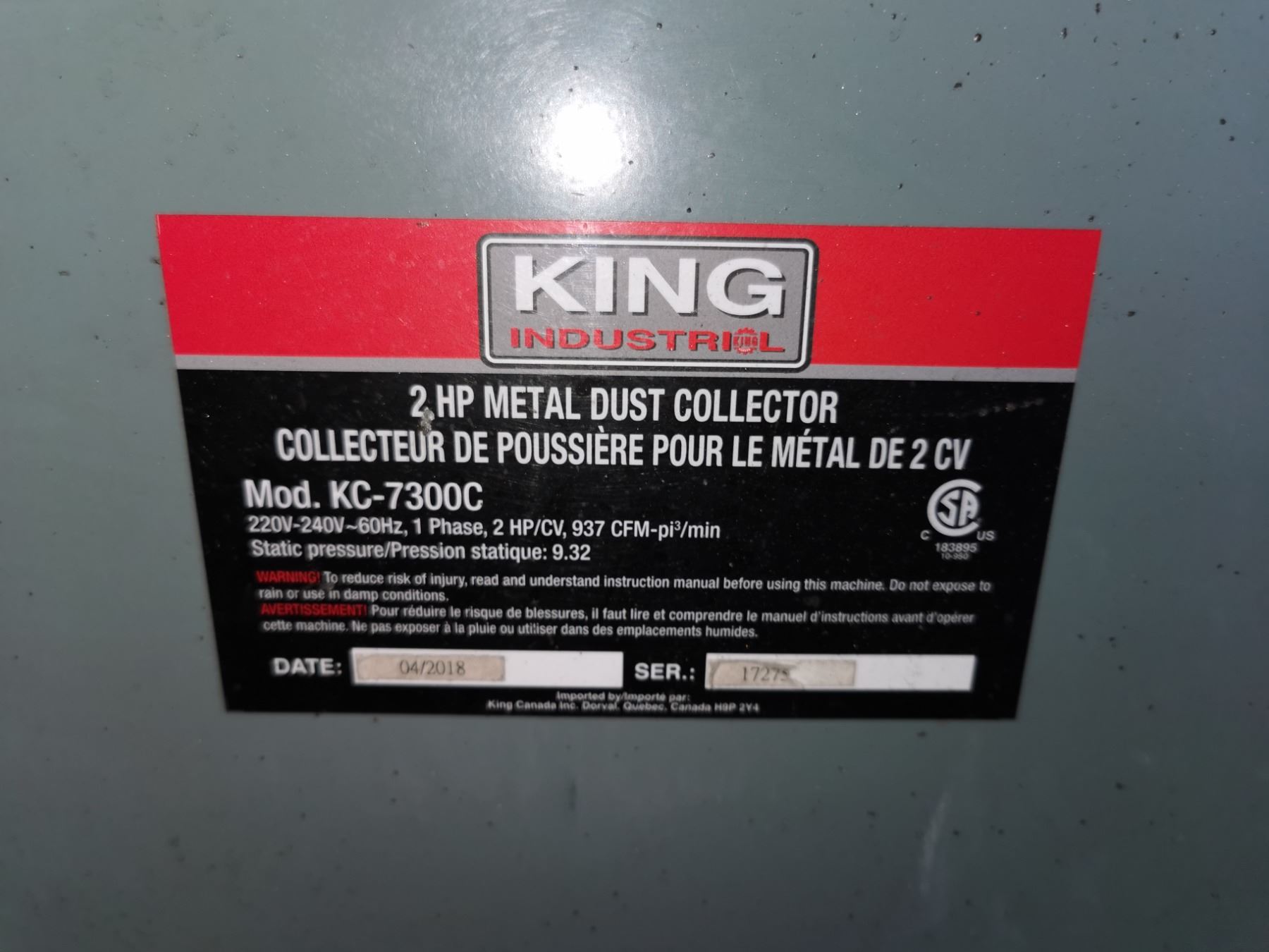 KING 2HP Dust Collector KC-7300C