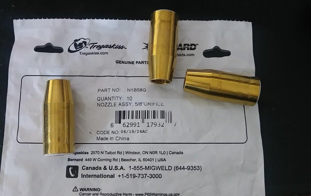 Tregakiss N1B58Q Nozzle, Quik Tip, 5/8 Orifice, Brass, Thread-On, Consumable NOZZLE 5/8 BRASS FOR MIG WELDER x 3