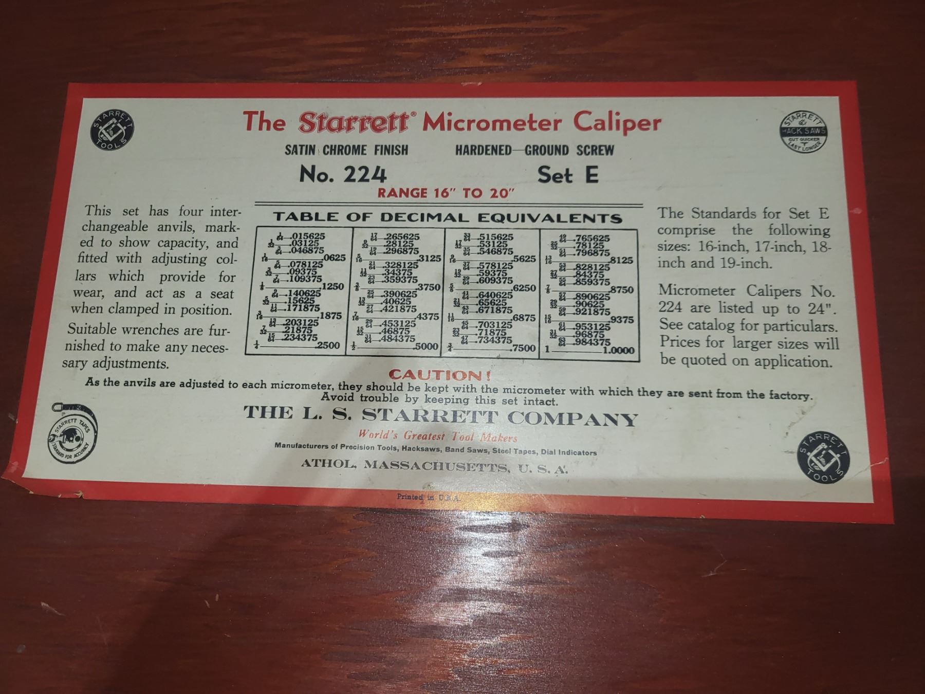 Starrett No.224 Micrometer 16" to 20"